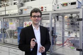 Georg PöhleinDas Vorläuferprodukt eines Katalysators entsteht über die Wechselwirkung elektrisch geladener Teilchen durch nasschemische Abscheidung.
