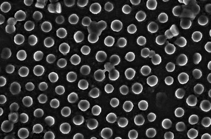 Universität BielefeldTypische Mikrogelteilchen, hier eine Aufnahme aus dem Rastermikroskop, sind 250 Nanometer klein – das sind 0,00025 Millimeter. Künftig werden Messungen mit der neuen Röntgenanlage das Bild ergänzen: Das Gerät liefert mathematische Werte.