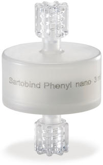 Mit einer Bindekapazität von 0,4 mg/cm² (15 mg/ml) ist der Membran-adsorber Sartobind Phenyl für die Antikörpergewinnung im mittleren Maß-stab einsetzbar. Wichtigstes Anwendungsgebiet ist die Beseitigung hydro-phober Verunreinigungen/Kontaminanten, die das Risiko unerwünschter Immunreaktionen bei der Behandlung von Patienten mit therapeutischen Proteinen bergen. Weitere Einsatzmöglichkeiten der HIC-Membran sind die Entfernung von Detergenzien und die Aufreinigung großer Moleküle und Biopartikel.