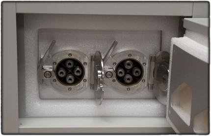- 12 Mikro-Vial Probencontainer (max. 0,5 ml Probenvolumen) mittels Adapter betrieben werden.