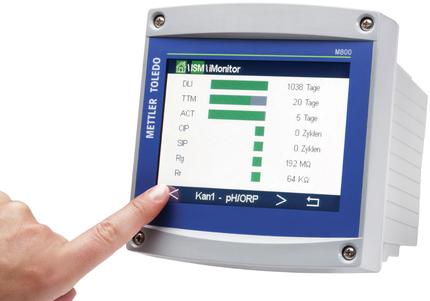 Der neue M800 von METTLER TOLEDO ist ein Transmitter für die Wasser- und Prozessanalytik, der durch sein neuartiges Bedienkonzept und die integrierten Diagnosefunktionen maximalen Komfort und ein hohes Maß an Sicherheit für den Anlagenbetrieb bietet. Die Grundlage dafür bietet das Intelligent Sensor Management (ISM®), das sich als Standard für digitale Sensoren in der Prozessanalytik etabliert hat. Der M800 verarbeitet bis zu 4 verschiedene ISM® Sensoren gleichzeitig und deckt folgende Messgrößen ab: pH-Wert, Redox-Potential, gelöster Sauerstoff (amperometrisch und optisch), elektrolytische Leitfähigkeit / spezifischer Widerstand, gelöstes Ozon, gelöstes Kohlendioxid und TOC (Total Organic Carbon).