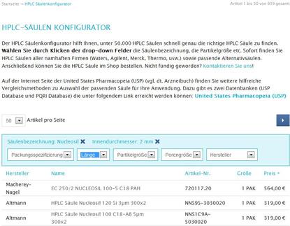 Der Säulenkonfigurator erlaubt Ihnen den Preisvergleich von HPLC Säulen von Marken wie