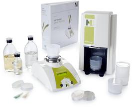 Um die Durchsatzleistung noch weiter zu steigern, kann ein Arbeitsplatz mit bis zu drei Milliflex PLUS Pumpen eingerichtet und von einem einzigen Anwender bedient werden. Tests haben ergeben, dass drei 3 Milliflex PLUS Pumpen schneller arbeiten als ein Sechsfachständer. Gebrauchsfertige, sterilisierte Milliflex® Filtereinheiten verbinden einen Probentrichter mit einemMembranfilter mit Netzaufdruck in eine Einheit. Der kontaktlose Membrantransfer minimiert das Risiko einer externen Kontamination. Diese Filtereinheiten können entweder mit vorgefüllten Milliflex® Agarmedienkassetten oder mit gebrauchsfertigen flüssigen Medien in Ampullen eingesetzt werden.