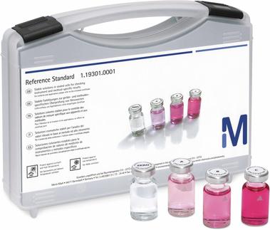Die Sets enthalten in einem handlichen Koffer versiegelte Küvetten mit eingefärbten Lösungen sowie eine Blindprobe, die Qualitätsdokumentation und Gebrauchsanweisung. Ein Zertifikat weist jeweils die entsprechende Spezifikation der beiden Referenzkits aus.