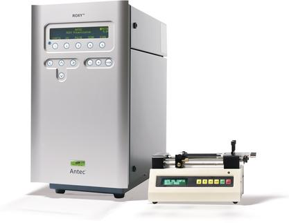 Mit dem elektrochemischen System ROXY von Antec wird die einfache Kopplun eines elektrochemischen Reaktors mit Massenspektrometern ermöglicht. Zu untersuchende Substanzen werden mittels einer Spritzenpumpe durch die elektrochemische Zelle gepumpt und dabei oxidiert oder reduziert. Die entstehenden Produkte werden direkt in einem Massenspektrometer analysiert.