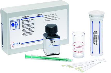 Der qualitative Merckoquant® Peroxidase-Test arbeitet genauso zuverlässig, jedoch deutlich schneller als das photometrische Referenzverfahren (DIN 10483-1). Der Schnelltest von Merck Millipore ist handlich und kann flexibel, direkt am Ort der Probenentnahme eingesetzt werden: Die Milchprobe wird mit etwas destilliertem Wasser verdünnt und mit einigen Tropfen des im Testsatz enthaltenen Reagenz versetzt.