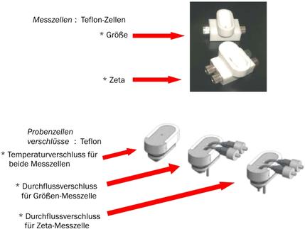 Die Teflonzelle ist sowohl für wässrige als auch für organische Medien ausgelegt. Ein Zellwechsel zwischen Größen- und Zetapotentialmessung ist nicht erforderlich. Ein Titrationsautomat mit Durchflusszelle steht zur Stabilitätsanalytik als Option zur Verfügung.