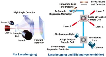 Gefaltete Optik mit geringstem Platzbedarf. Dazu Nass- und Trockendispergiereinheit, Bildanalysemodul eingebunden in Flüssigkeitskreislauf mehr