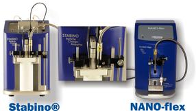 Grenzfläche, Größe und Konzentration von kolloidalen Stoffen in Wechselwirkung mit der flüssigen Umgebung werden im Duo Stabino®/NANO-flex charakterisiert, wobei Größen- und Konzentrationsbereich weitgehend übereinstimmen. Eine schnelle Titration eignet sich als Fingerprintverfahren mehr