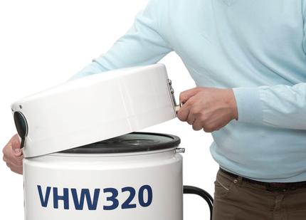 Der VHW321 verfügt zusätzlich über das Bag-In-Bag-Out-System, das den sicheren Austausch von Absolut-Filtern gewährleistet – ohne dass der Bediener in irgendeiner Weise mit den gefährlichen Stäuben in Berührung kommt. Zum Ausstattungsumfang von beiden Saugern gehören ein Vakuummeter, das die Arbeitsleistung kontinuierlich überwacht, sowie ein 25 Liter fassender Schmutzbehälter. Während das Modell VHW321 mit einem Gewicht von 78 Kilogramm sowie Abmessungen von 117 Zentimetern Höhe, 42 Zentimetern Breite und 75 Zentimetern Länge bei der mobilen Reinigung keinerlei Kompromisse eingeht, kann der fünf Kilogramm leichtere VHW320 auch in Fertigungsmaschinen implementiert werden und eignet sich ideal für automatisierte Anwendungen im Dauerbetrieb.