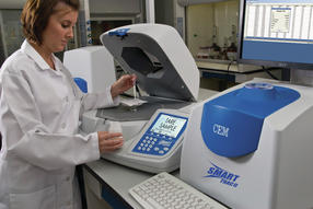Das Mikrowellen-Analysensystem SMART Turbo der Fa. CEM benutzt Mikrowellenenergie zum Bestimmen des Feuchte-/ Feststoffgehaltes von einer Vielzahl unterschiedlichster Materialien als Rohprodukte, Zwischenprodukte sowie Endprodukte.