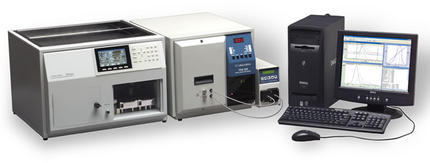 Detektorsystem zur Charakterisierung von Polyolefinen und anderen Polymeren, die nur bei hohen Temperaturen löslich sind. Mit dem Hochtemperatur GPC/SEC-System (HT-GPC) Modell 350 können absolute Molekulargewichte ohne Extrapolation oder Korrektur der Messdaten bestimmt werden. Weiterhin können molekulare Größen von Polymerproben (hydrodynamische Radien und Trägheitsradien bis unter 1 nm) sowie intrinsische Viskositäten und Informationen über den Verzweigungsgrad, die Struktur und das Aggregationsverhalten einer Probe in einem einzigen GPC/SEC-Experiment ermittelt werden.