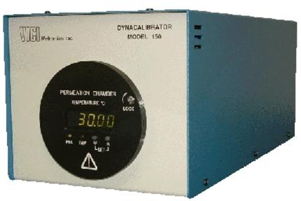 Der Dynacalibrator 150 ist eine kompakte Einheit welche die präzisen Gas-Konzentrationen erzeugt welche Sie benötigen. Eine passivierte, Glas beschichtete Diffusionskammer beinhaltet das/die von Ihnen gewählte/n Diffusions-Röhrchen. Mit dem inerten Trägergasstrom wird dann das erzeugte Kalibiergas aus der Kammer gespült. Der digitale Temperaturregler hält die Kammertemperatur auf dem eingestellten Wert mit einer Präzision von ±0.01°C „traceable to NIST standards“. Die Kammertemperatur lässt sich im Bereich von 5°C über Raumtemperatur bis 110°C einstellen. Dadurch können Sie ein breites Spektrum an Komponenten vom niedrigen bis in den hohen Dampfdruckbereich verdampfen. Die volumetrische Konzentration lässt sich dann einfach durch Veränderung des Trägergasstroms einstellen*.