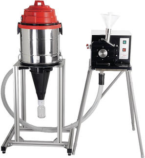 Das gibt es nur bei FRITSCH Schneidmühlen: Die patentierte FRITSCH-Probenabsaugung mit Zyklon mit ihrer starken, durch Unterdruck erzeugten Saugfunktion sorgt für besonders einfaches Befüllen, schnellen Durchsatz und gute Kühlung, verhindert effektiv das Herausfliegen von Mahlgut bei der Befüllung und ermöglicht so die Zerkleinerung von Materialien, die ohne Probenabsaugung mit Zyklon nicht möglich wären, (z. B. Verarbeitung heterogener Stoffgemische, wie z. B. Sekundärbrennstoffe in der Zementindustrie).