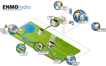ENMOhydro ist das moderne Softwaresystem für die Steuerung von automatisierten Gewässergütemessnetzen. Das modular aufgebaute, zu 100 % webbasierte Multi-Tier-System sammelt kontinuierlich die Datensätze und Statusmeldungen der in den jeweiligen Messstationen angeschlossenen Geräte und übermittelt diese über Internet (DSL/UMTS) an eine Oracle-Datenbank in der Messnetzzentrale.