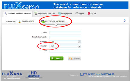 Die Suchmaschine FLUXearch erleichtert Ihnen die Suche nach kommerziell erhältlichen zertifizierten Referenzmaterialien (CRM) für die optische Spektralanalyse (OES) und die Röntgenfluoreszenzanalyse (RFA).