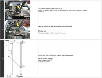 Im sog. maintenance guide der Software sind alle Wartungsarbeiten, die der Anwender selber erledigen kann, ausführlich beschrieben. Fotostrecken und Schnittzeichnungen helfen bei Arbeiten wie Säulen- oder Linerwechsel (s. Abb.:3), dem Tausch des Filaments oder der Reinigung der Ionenquelle.