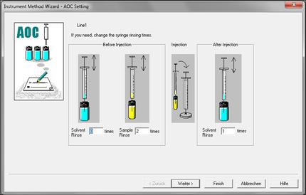 Abb 1: Schritt 1 im Methoden-Wizard; gezeigt sind die Einstellungen zur Probennahme durch den Autosampler