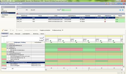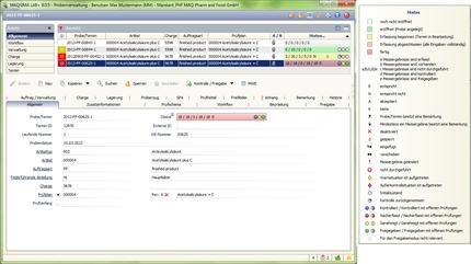 Modul Probenverwaltung: Übersicht aller Prüfaufträge (Routineproben und Stabilitätstermine) mit vordefinierten und benutzereigenen Ansichten. und intuitiv dargestellten, umfassenden Statusinformationen.