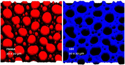 Abb. 4: Raman-Bilder als Resultat der Integration über die nur für PMMA oder SBR charakteristischen Raman-Peaks