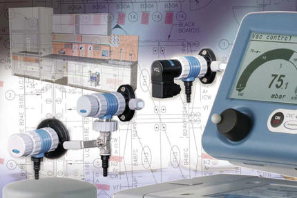 Die Installation, also die Verbindung vom Pumpstand zu den Entnahmemodulen ist ohne großen Werkzeugaufwand innerhalb kürzester Zeit über chemisch beständige PTFE-Schläuche und passende Verbinder durchführbar. Die Module sind sowohl für die Auf- als auch für die Unterwandmontage, mit manuellen Bedienelementen oder automatischen Ventilen erhältlich. Letztere stellen konstantes Vakuum für den jeweiligen Arbeitsplatz sicher und werden dazu vom Vakuum-Controller angesteuert, der übersichtlich und arbeitsplatznah ins Labormöbel integriert werden kann.