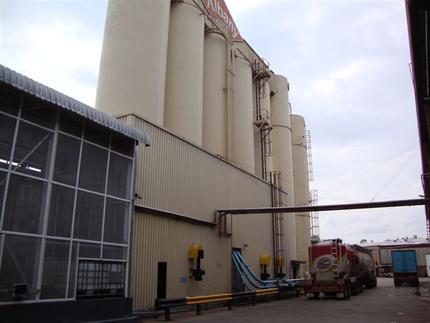 Anlage 1 und Anlage 2 mit den Silowaagen, die mit den Lagersilos verbunden sind.