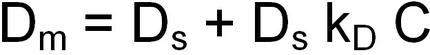 Hierbei ist Dm der gemessene Diffusionskoeffizient bei verschiedenen Konzentrationen und Ds ist der Diffusionskoeffizient der Probe bei der Konzentration C = 0 mg/ml.