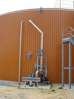 Neben der Entscheidung zur Hydrolyse war es dem Betreiber auch wichtig, dass die Behälter aus Edelstahl bestehen. Das garantiere eine weit höhere Lebensdauer als Beton. „Aufgrund seiner rauen Oberfläche kann Beton bereits nach einem Jahr stark angegriffen sein“, weiß der gelernte Metallbauer und Landmaschinenmechanikermeister Abele aus Erfahrung. Bei den von Lipp gefertigten Behältern hingegen erwartet er eine Haltbarkeit von mindestens 20 Jahren. Weil der verwendete Verinox-Edelstahl eine besonders glatte Oberfläche hat, arbeiten die Rührwerke zudem viel leichter, da das Material nicht an den Wänden haften bleibt. Das verkürzt die Mischzeit zusätzlich und spart Energie ein. Da Stahl ein guter Wärmeüberträger ist, konnte Abele die Heizung an der Außenseite anbringen. Die Wärmeverteilung im Behälter ist dadurch besonders gleichmäßig. Trotz seiner Größe benötigt der Fermenter nur 0,8 Prozent des Gesamtenergieverbrauchs der Anlage. Das entstandene Gas wird im integrierten Speicher gesammelt, der als druckloser Pufferraum dient und aus flexiblem und beschichtetem Polyester-Gewebe besteht.