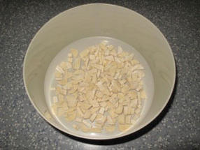 Rettich ist in der Nahrungmittelindustrie eine beliebte Zutat für Suppen. Textur, Rehydrierung und Aroma sind für die Nahrungsmittelindustrie die wichtigsten Eigenschaften. Die hellweiße Farbe und die feine Struktur des Rettich erfordern eine schonende Trocknung. Zur Zeit wird die konventionelle Gefriertrocknung verwendet, um ein getrocknetes Produkt mit guter Textur zu erhalten und um hohe Verluste während der Produktion zu vermeiden. Die Trocknungszeit für einen solchen Prozess liegt zwischen 20 und 50 Stunden. Aufgrund dieser extrem langen Trocknungszeit leiden die Aromen sehr. Dieser Nachteil kann durch Mikrowellen Gefriertrocknung vermieden werden, wo sich die Trocknungszeiten extrem verkürzten – auf 2 bis 4 Stunden – so dass die Aromen besser erhalten bleiben. Jedoch führt die kurze Trocknungszeit zu Kompromissen in Bezug auf Volumenerhalt und Rehydrierung (siehe Bild 8 und Tabelle 1)