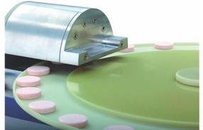 Für eine vollständige Kontrolle an einer Tablettenpressmaschine müssen die Tabletten lediglich am Maschinenausgang durch einen Sensor geleitet werden, mit dem die Masse und Feuchte bestimmt werden.