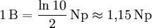 Zu beachten ist dabei, dass die Größen x1 und x2 stets die gleiche Einheit haben müssen. Ein Beispiel für eine so definierte Größe ist der Schalldruckpegel. Umrechnung in die Einheit NeperDezibel und Neper stehen in einem festen linearen Verhältnis zueinander: