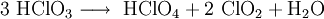 Durch wasserentziehende Mittel kann Chlorsäure bis zu einer Konzentration von 40 % aufkonzentriert werden. Höher konzentrierte Lösungen zersetzen sich unter Bildung von Chlor, Chlordioxid und Perchlorsäure: