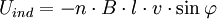 Es ist jedoch zu beachten, dass das Induktionsgesetz nicht zwischen Selbsterregung und Fremderregung unterscheidet. Insofern ist die Kompensationswirkung des induzierten Stromes schon im magnetischen Fluss Ist das B-Feld von außen aufgeprägt, so ändert sich der Fluss durch den entstehenden induzierten Strom nicht. Vielmehr kompensiert die Quelle, die das Magnetfeld erzeugt, die durch den induzierten Strom erzeugte Flussänderung instantan, indem sie zusätzliche Energie zur Aufrechterhaltung des B-Feldes bereitstellt. Diese Situation liegt in sehr guter Näherung beispielsweise beim Transformator mit eingeprägter Primärspannung vor. Sobald im Sekundärkreis ein Strom fließt, erhöht sich in der primärseitigen Spannungsquelle der Quellenstrom, so dass der magnetische Fluss im gemeinsamen Kern konstant bleibt. Induktionsspannung durch Bewegen eines elektrischen Leiters in einem Magnetfeld (1. Induktionsphänomen)Wenn ein elektrischer Leiter in einem Magnetfeld bewegt wird, entsteht nur dann eine Induktionsspannung, wenn er sich nicht in Feldrichtung bewegt (parallel zu den Feldlinien). Zu beachten ist dabei, dass in diesem Kontext unter dem Begriff „elektrischer Leiter“ die fix mit dem Leiter aber nur gedachte Kontur (Leiterschleife) wesentlich ist und nicht direkt ein bestimmter meist metallischer Leiter in Form eines Drahtes oder ähnliches. Diese begriffliche Trennung ist deswegen notwendig, da es sonst bei bestimmten Induktionsphänomenen, und bei allgemeiner Anwendung des Induktionsgesetzes welche durch mechanische Bewegungen im Magnetfeld ausgelöst werden wie der Unipolarinduktion, zu Verständnisschwierigkeiten kommt. Man erreicht eine maximale Spannung, wenn sich der elektrische Leiter senkrecht zum Magnetfeld bewegt (siehe auch Drei-Finger-Regel). Da sowohl Geschwindigkeit als auch magnetische Flussdichte vektorielle Größen sind, muss das Vektorprodukt gebildet werden. (Daher auch der Faktor Nach der Lenzschen Regel entsteht die Induktionsspannung, um durch den durch sie bewirkten Stromfluss wiederum ein Magnetfeld zu erzeugen, welches die äußere Magnetfeldänderung kompensiert, so dass eine Induktion also immer ihrer Ursache entgegen wirkt. Dies schlägt sich im negativen Vorzeichen der folgenden Gleichungen nieder. Die erzeugte Spannung ist dabei: