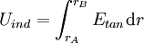 Beide Darstellungsformen beschreiben ein und den selben Sachverhalt. Je nach konkreten Anwendungsfall und Problemstellung kann es sinnvoll sein, die eine oder die andere Form zu benutzen. Im Folgenden sind beide Darstellungsformen beschrieben. Induktionsgesetz in IntegralformEin zeitlich sich ändernder magnetischer Fluss induziert in einer ihn umgebenden Leiterschleife eine Spannung Uind. Diese Spannung lässt sich mittels eines Spannungsmessgerätes messen, wenn man die geschlossenen Leiterschleife auftrennt. Die eigentliche Induktionswirkung kommt dadurch zustande, dass ein zeitlich sich ändernder Fluss dΦ/dt vom einem elektrischen Wirbelfeld mit in sich geschlossenen Feldlinien umgeben ist. Dieses elektrische Wirbelfeld Etan, es spielt nur die tangentiale Feldkomponente eine Rolle, führt entlang eines infinitesimalen Stückes dr der Leiterschleife zu einer induzierten Spannung dUind: