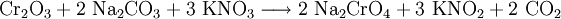 Bei der Oxidationsschmelze mit Soda und Salpeter werden Chrom(III)-Ionen hingegen wieder zu gelben Chromat-Ionen gemäß folgender Reaktionsgleichung aufoxidiert: