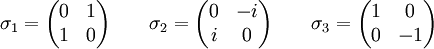 | Dieser Artikel basiert auf dem Artikel Pauli-Matrizen aus der freien Enzyklopädie Wikipedia und steht unter der GNU-Lizenz für freie Dokumentation. In der Wikipedia ist eine Liste der Autoren verfügbar. |