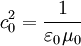 Im Vakuum besteht zwischen der magnetischen Feldkonstante μ0, der elektrischen Feldkonstante ε0 und der Vakuumlichtgeschwindigkeit c0 der folgende von Maxwell vorhergesagte und 1857 von Wilhelm Eduard Weber und Rudolf Kohlrausch experimentell bestätigte Zusammenhang:
