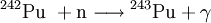 Die angegebenen Zeiten sind Halbwertszeiten. Ein weiteres Neutron führt in den meisten Fällen zur Kernspaltung, zum Teil entsteht jedoch das Isotop 240Pu. Da dieses Isotop nur schlecht spaltbar ist, führt weiterer Neutroneneinfang zur Entstehung von 241Pu, das wiederum gut spaltbar ist. Allerdings werden nicht alle Atome gespalten, so dass bei einigen davon der Brutprozess zu 242Pu und noch schwereren Isotopen fortgesetzt werden kann. Weil jedoch das spaltbare 243Pu eine sehr kurze Halbwertszeit hat, ist ein weiterer Neutroneneinfang, der meistens zur Spaltung oder – in selteneren Fällen – zur Erzeugung von Plutonium 244Pu führt, unwahrscheinlich. Der Plutonium-Brutprozess ist daher praktisch beim 243Pu zu Ende und führt über den Betazerfall von 243Pu zum Americium-Isotop 243Am. Da jede Stufe dieser aufeinander aufbauenden Kernreaktionen eine gewisse Zeit braucht, ändern sich im Laufe der Zeit die relativen Mengen der Isotope im Reaktorkern. Die Raten, mit der die Kernreaktionen ablaufen, hängen von der Geschwindigkeitsverteilung der Neutronen ab. Weil ein großer Teil der leicht spaltbaren Isotope jedoch gespalten wird und sich nicht in andere Isotope umwandelt, nimmt die mögliche Ausbeute (Effizienz) des Brutprozesses mit der Erzeugung jedes weiteren leicht spaltbaren Isotops ab. Ganz selten auch noch: