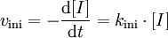 v_{\text{ini}}= - \frac {\mathrm{d}[I]} {\mathrm{d}t} = k_{\text{ini}} \cdot [I]